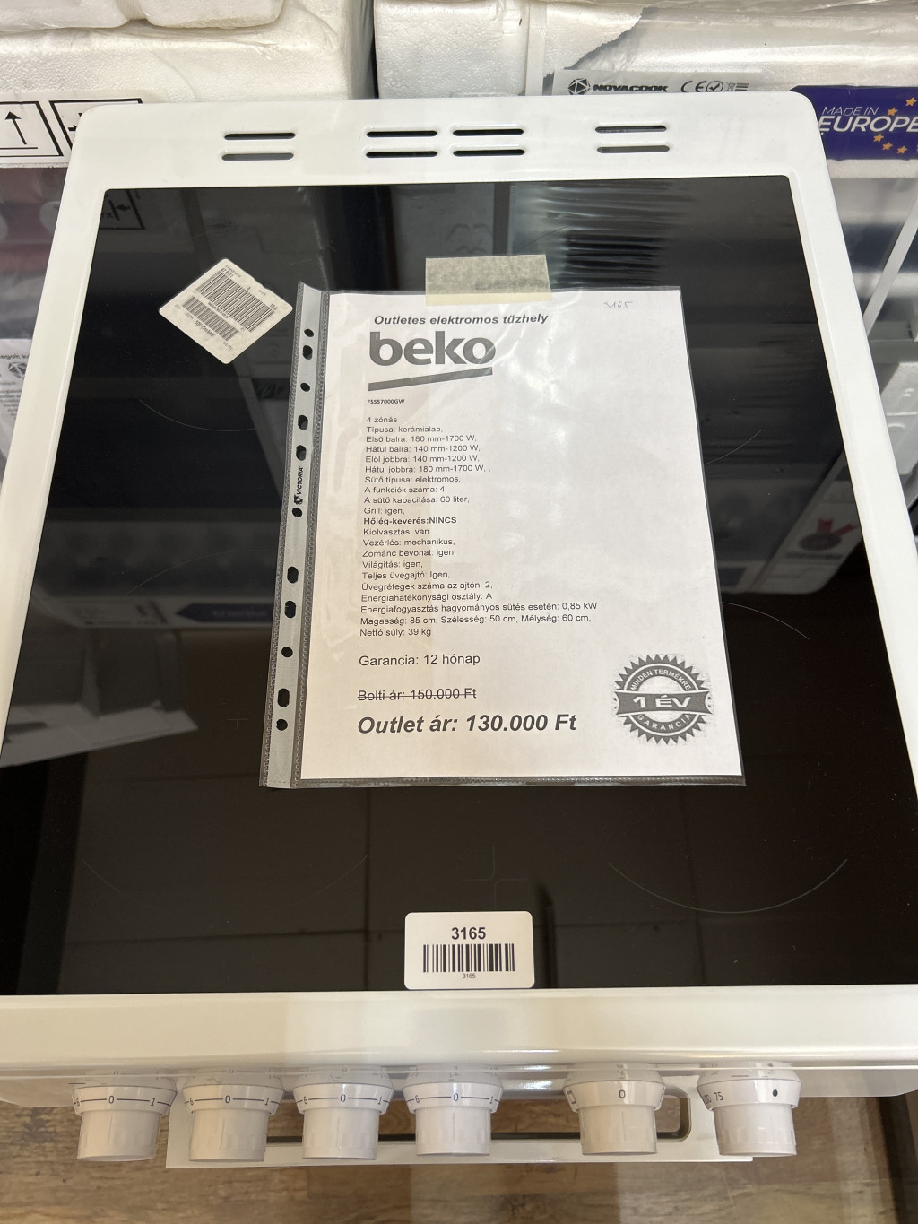 Energiafogyasztás hagyományos sütés esetén: 0,85 kW