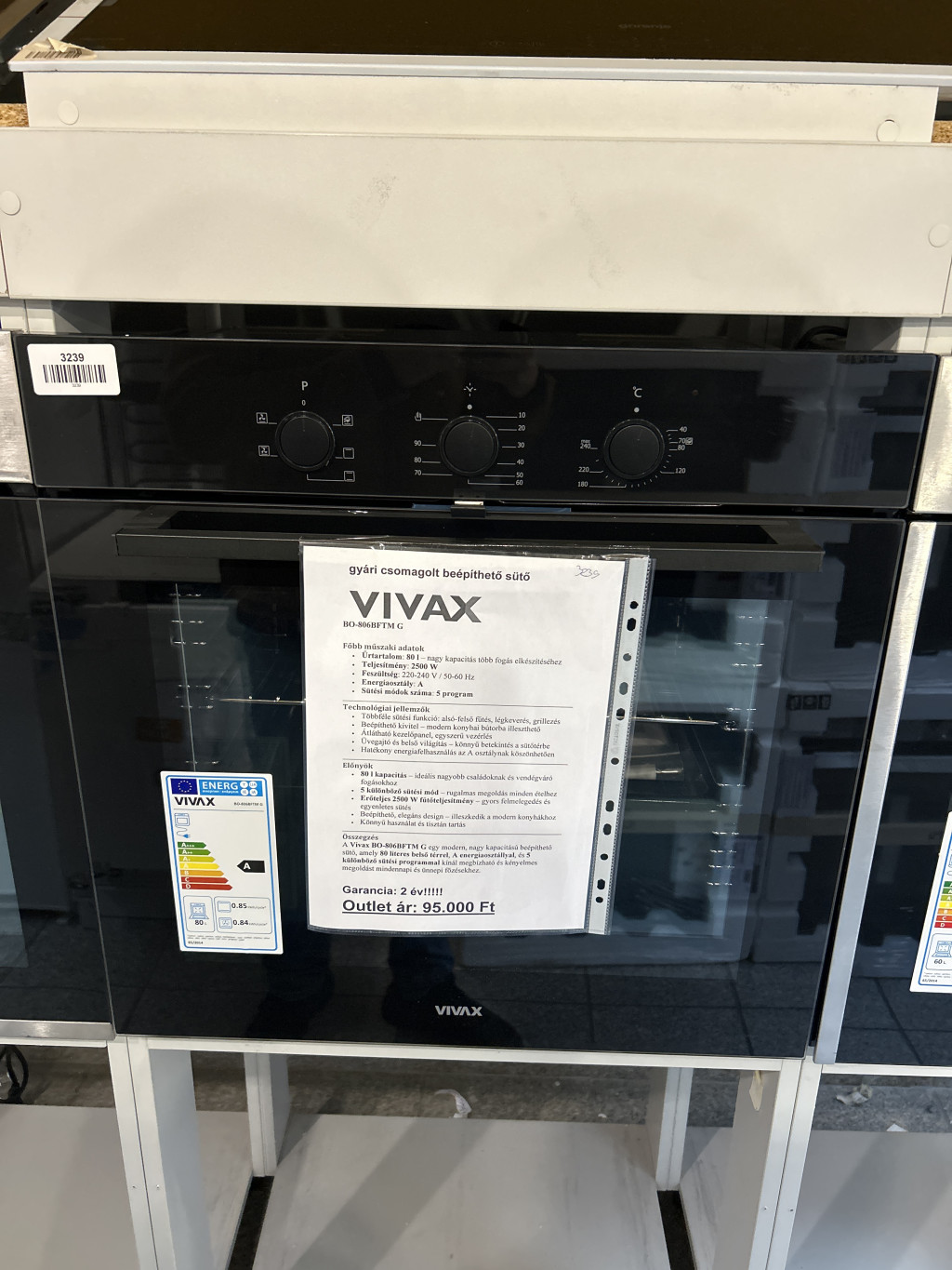 gyári csomagolt beépíthető sütő Vivax BO-806BFTM G