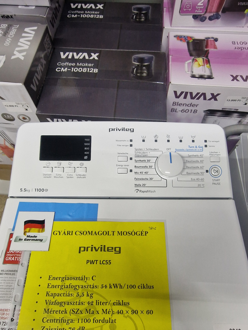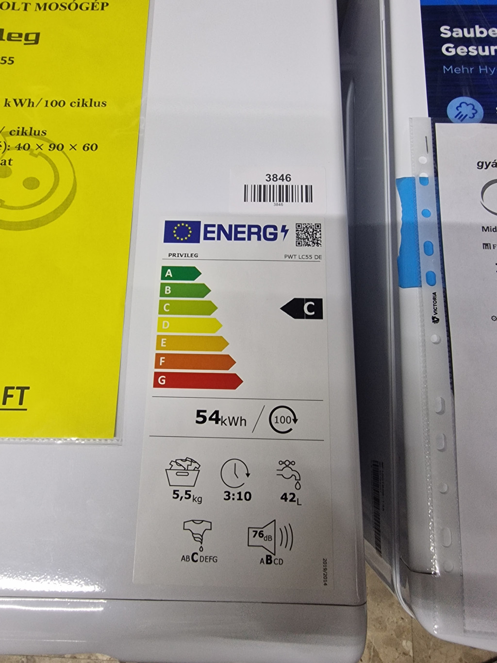 - Energiafogyasztás: 54 kWh/100 ciklus