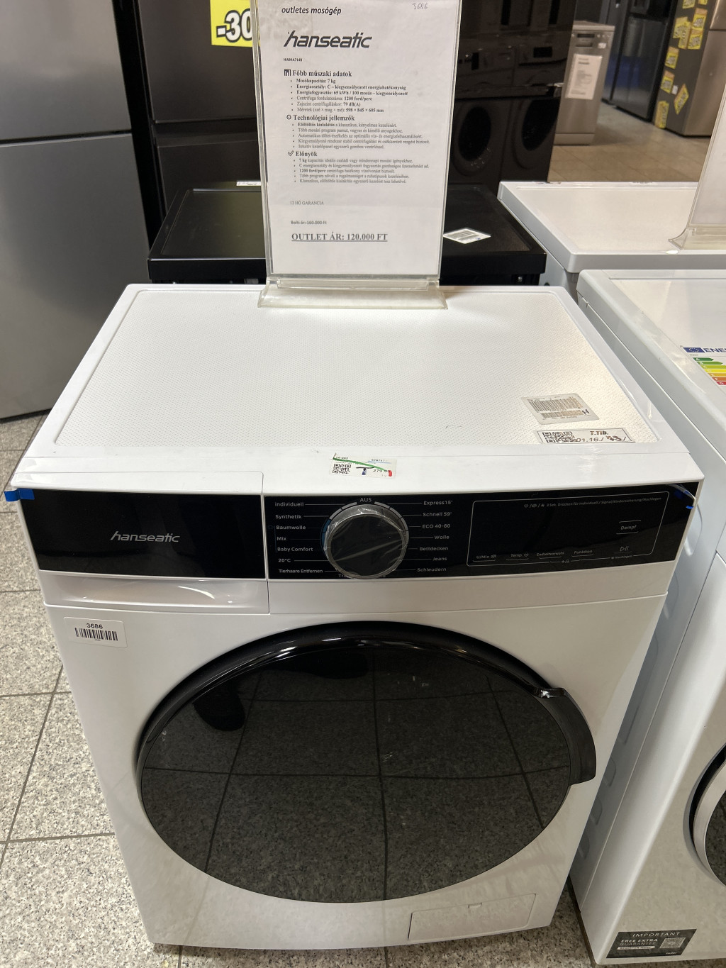outletes, gőztechnológiás mosógép Hanseatic HWMA714B