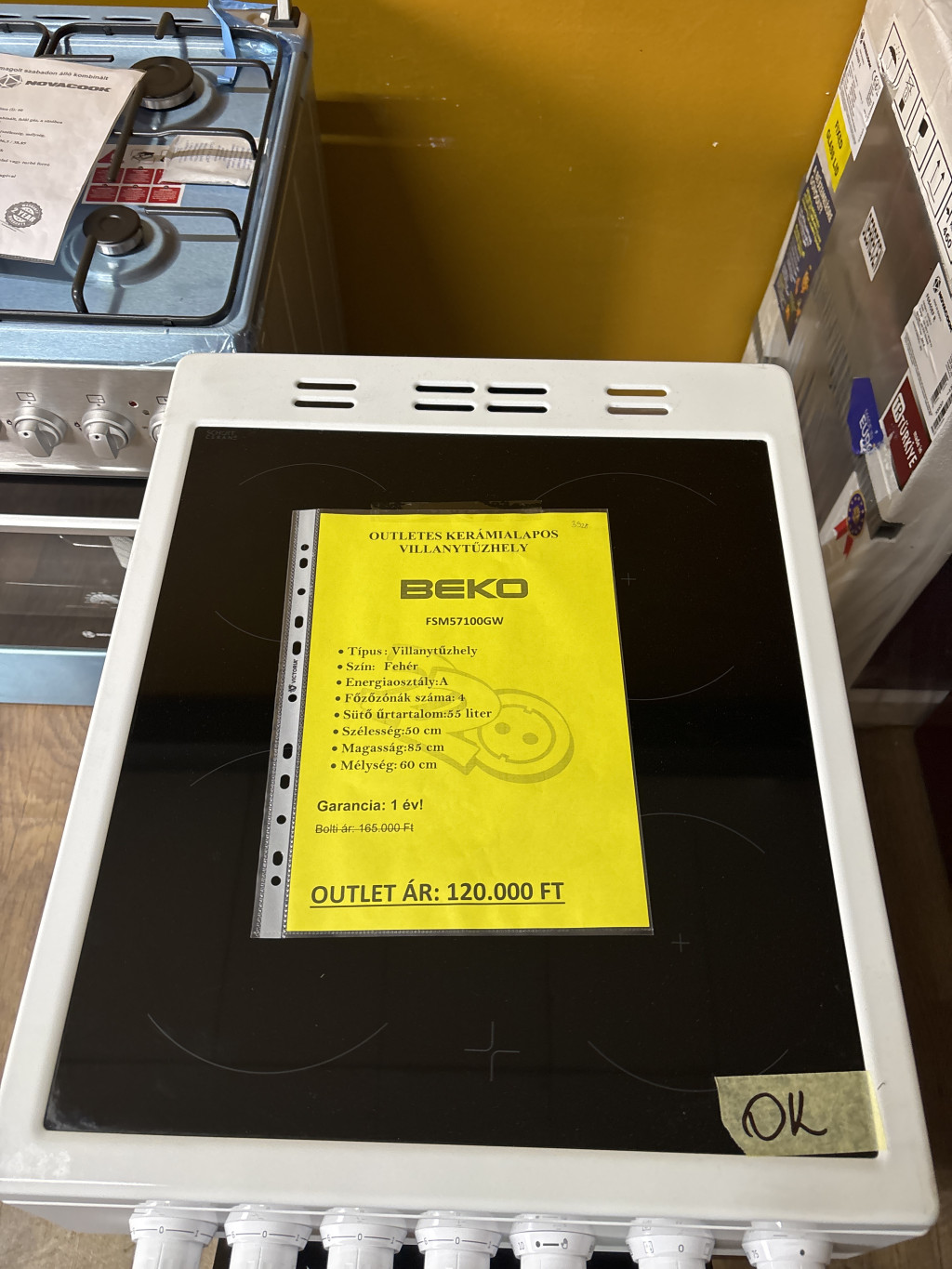 outletes kerámialapos villanytűzhely Beko FSM57100GW